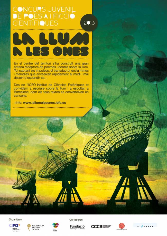 La luz y el sonido tienen en común que se transmiten a través ondas; los jóvenes, el arte y la ciencia comparten la energía y posibilidad de transformar el futuro. El Instituto de Ciencias Fotónicas (ICFO), un centro de investigación dedicado al estudio de las ciencias y tecnologías de la luz, organiza por segundo año consecutivo, "La luz en las ondas", un concurso que reúne todos estos actores. Está dirigido a jóvenes de entre 15 y 18 años y profesores que quieran escribir una poesía o relato breve de ficción científica inspirado en la luz. Los nueve ganadores verán convertido su texto en una canción para un grupo emergente del panorama musical catalán.