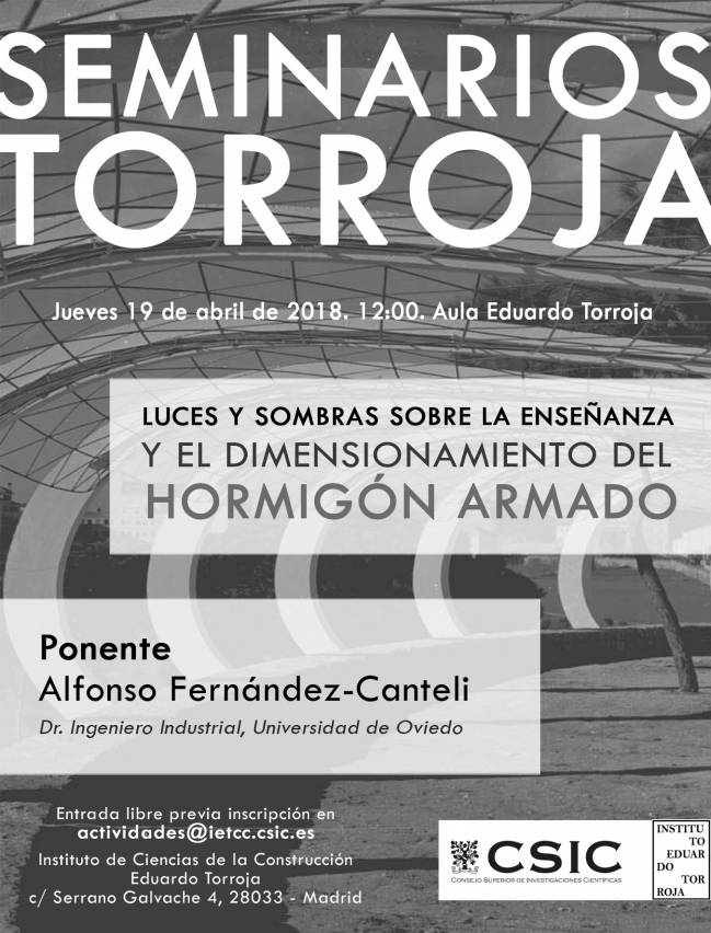 El próximo 19 de abril tendrá lugar el Seminario "Luces y sombras sobre la enseñanza y el dimensionamiento del hormigón armado" que impartirá el doctor Alfonso Fernández-Canteli de la Universidad de Oviedo.