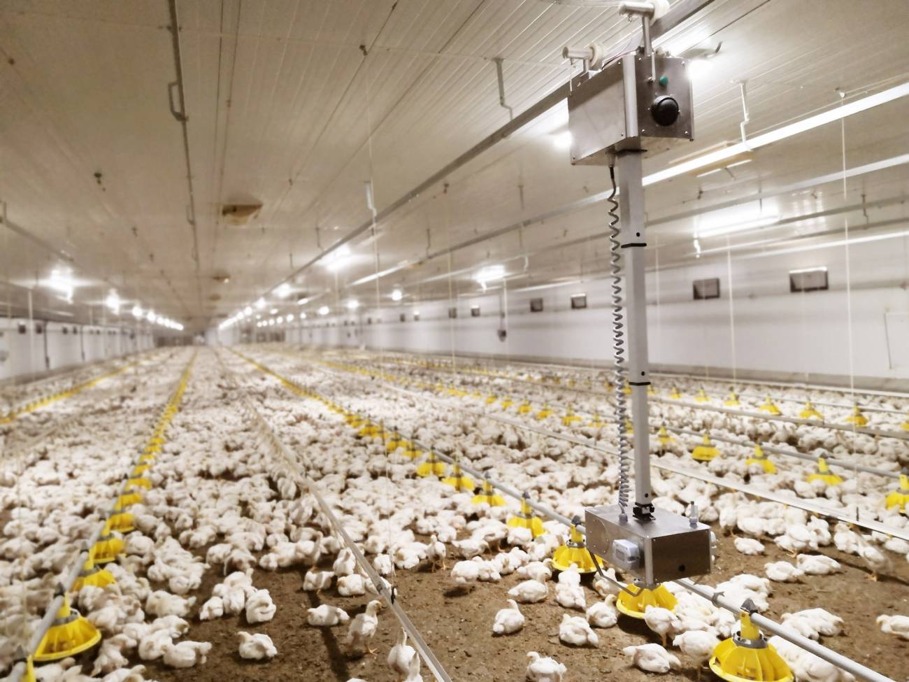 Cámara que monitoriza en tiempo real posibles problemas de salud, a través del análisis visual de las heces de los pollos mediante inteligencia artificial. / Cortesía de Heiner Lehr.