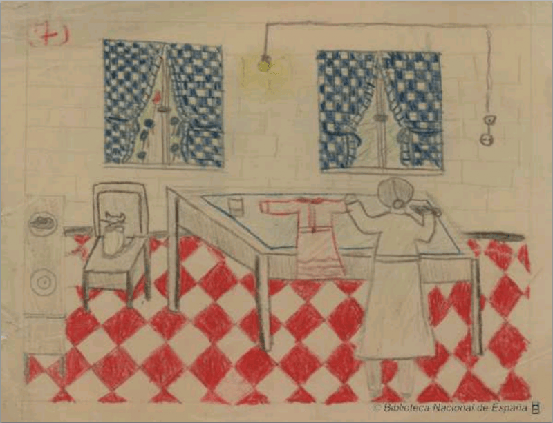 Dibujos de los niños de la guerra. Madre planchando. 1937.