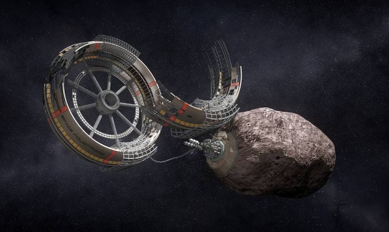 RUEDA GIGANTE. El uso de grandes ruedas mécanicas para mover los asteroides o explotarlos de forma comercial de momento solo está en la imaginación de empresas como Deep Space Industries, pero en el futuro podrían ser una realidad. / DSi