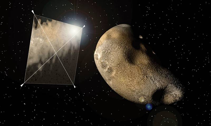 VELA SOLAR. Se trata de grandes y ligeras superficies que aprovechan los fotónes de la radiación solar o el plasma del viento solar para moverse. Podrían desplazar a los asteroides cercanos, o directamente atarse a estos para que pudieran ‘windsurfear’ por el espacio. También una flotilla de velas podría protegerlo del Sol y desviar su trayectoria. / Bong Wie-Iowa State U.
