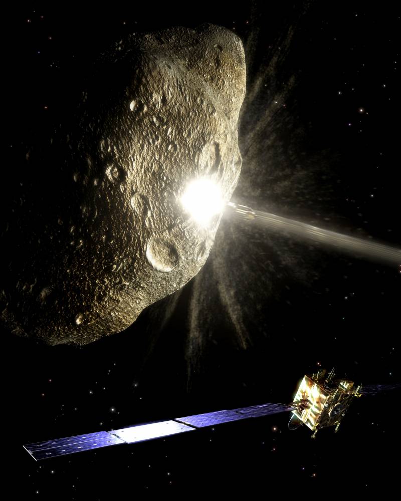 IMPACTAR UNA SONDA. Un ejemplo es la misón Don Quijote de la Agencia Espacial Europea (ESA) para probar este concepto. Primero iría la sonda Sancho a estudiar el asteroide y después la sonda Hidalgo, que impactaría contra el asteroide para desviarlo. / ESA-AOES Medialab