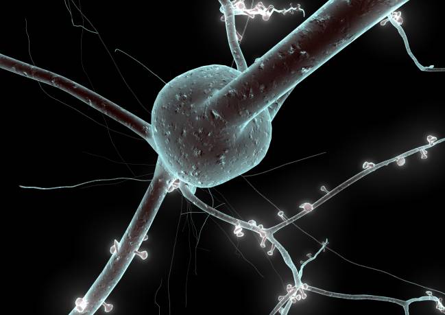Un modelo 3D de neurona reconstruido a partir de datos de laboratorio. Las protuberancias son terminales presinápticas. / EPFL